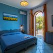 Questa camera è climatizzata con letto matrimoniale, TV e frigo. La maggior parte sono piano terra fronte mare, qualcuna piano rialzato con balconcino vista mare.