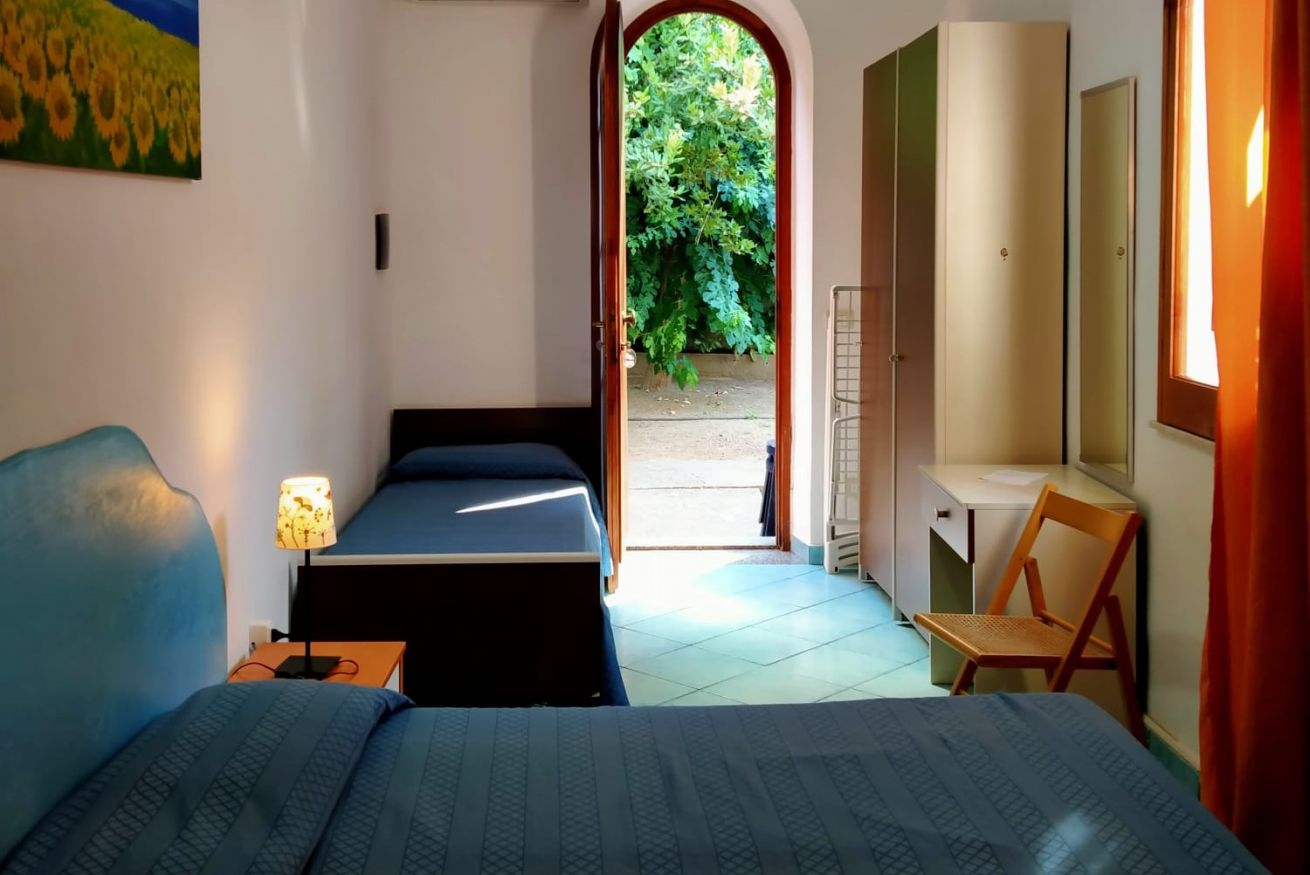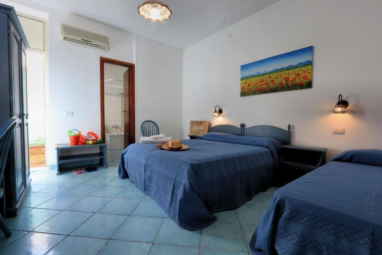 Questa camera climatizzata, perfetta per due adulti e un bambino, è progettata per offrirti tutto il necessario per una vacanza al mare senza pensieri. Dotata di un comodo letto matrimoniale e un lettino, TV e frigo, è la scelta ideale per chi cerca relax e praticità.